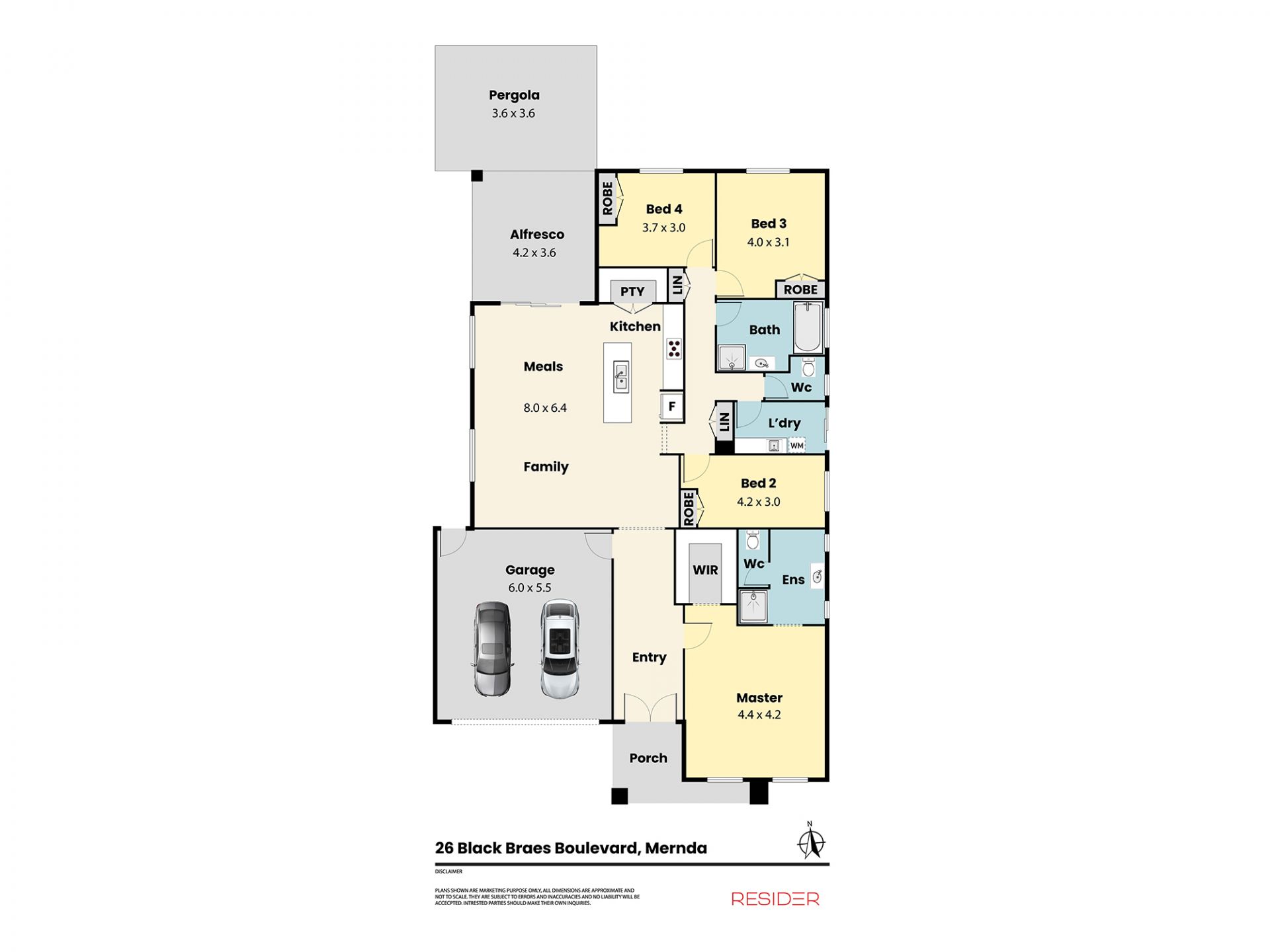 The layout is both functional and inviting, offering four generous bedrooms, two bathrooms, and a double garage with internal access. The master bedroom features a full ensuite and walk-in robe, while the light-filled open-plan living and dining area flows seamlessly to an extended undercover alfresco - ideal for entertaining, family gatherings, or relaxed weekends at home. The backyard is generous in size, complemented by well-established gardens that enhance privacy and outdoor enjoyment.