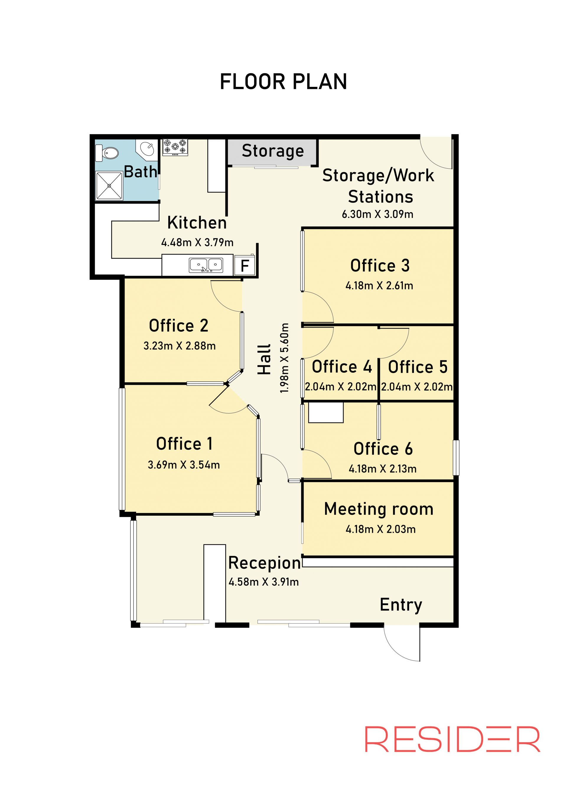 Reception area with reception desk plus multiple offices (See the floorplan )